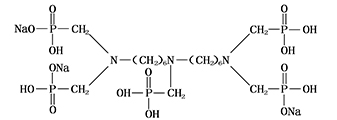 別名:二己烯三胺五亞甲基膦酸鈉 分子式:C17H44-xO15N3P5Nax 相對分子質(zhì)量:約731 結(jié)構(gòu)式: 一、性能與用途 BHMTPH·PN(Nax)是高效的螯合型阻垢劑,對碳酸鹽垢和硫酸鹽垢具有良好的阻垢效果。在較寬的pH范圍和120°C高溫下有極佳的水溶性和熱穩(wěn)定性,對鈣離子容忍度高。BHMTPH·PN(Nax)是油田水處理中的緩蝕阻垢劑,工業(yè)循環(huán)冷卻水和鍋爐水的阻垢緩蝕劑。 二、技術(shù)指標