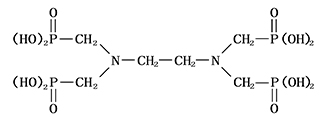 別名:乙二胺四亞甲基膦酸 分子式:C6H20O12N2P4 相對(duì)分子質(zhì)量:436 結(jié)構(gòu)式: 一、性能與用途 常溫下EDTMPA為白色結(jié)晶性粉末,熔點(diǎn)215-217°C,微溶于水,在室溫下溶解度小于5%,易溶于氨水。 EDTMPA具有很強(qiáng)的螯合金屬離子的能力,與銅離子的絡(luò)合常數(shù)是包括EDTA在內(nèi)的所有螯合劑中最大的。EDTMPA為高純?cè)噭┣覠o毒,在電子行業(yè)可作為半導(dǎo)體芯片的清洗劑用于制造集成電路;在醫(yī)藥行業(yè)作放射性元素的攜帶劑,用于檢查和治療疾??;EDTMPA的螯合能力遠(yuǎn)超過EDTA和DTPA,幾乎在所有使用EDTA作螯合劑的地方都可用EDTMPA替代。 二、技術(shù)指標(biāo)